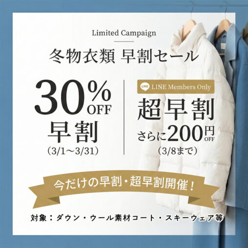 Limited Campaign 冬物衣類 早割セール …